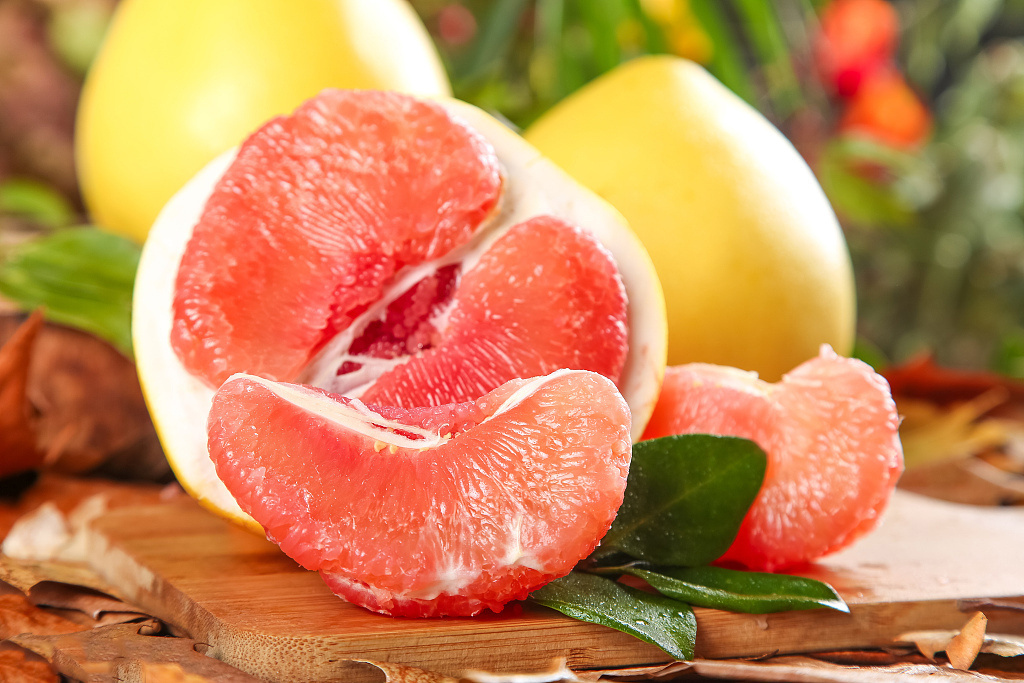 广东的秋日,总是从吃一瓣粉色的梅州蜜柚开始。